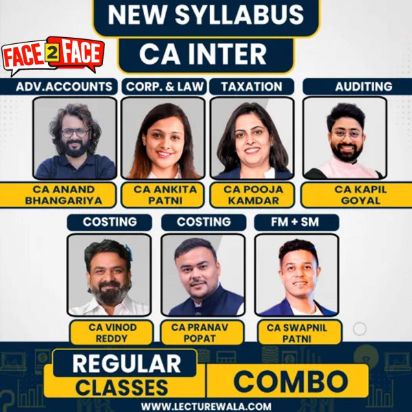 COURSE NAME | ADV. ACC BY CA ANAND BHANGARIA LAW BY CA ANKITA PATNI TAX BY CA POOJA KAMDAR COSTING BY CA VINOD REDDY COSTING BY CA PARNAV POPAT AUDIT BY CA KAPIL GOYAL FM SM BY CA SWAPNIL PATNI |